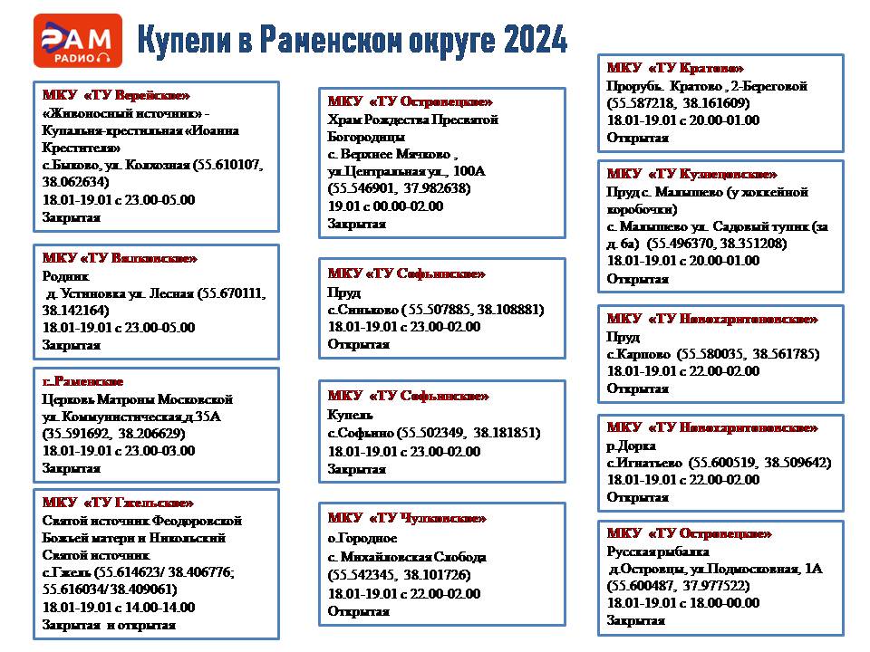В Раменском городском округе подготовлено 13 мест для крещенских купаний