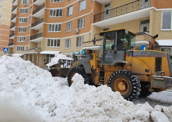 Большие навалы снега, которые образовались при уборке в дни снегопада на внутриквартальной территории ул.Крымской, вывозит большая техника МБУ «Содержание и благоустройство».