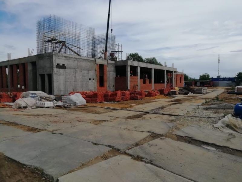 «На объекте 40 рабочих и 3 единицы техники. Выполняются работы по армированию вертикальных конструкций второго этажа, кладке стен из кирпича первого этажа, отдела подвала, устройство инженерных сетей. Строительство ведется согласно графику», — рассказали в ведомстве.