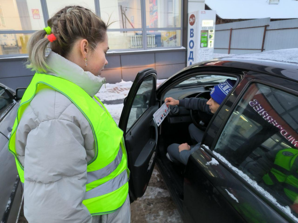 В ходе рейда было проверено более 70 автомобилей на наличие удерживающих устройств для перевозки маленьких пассажиров, надежность их креплений.