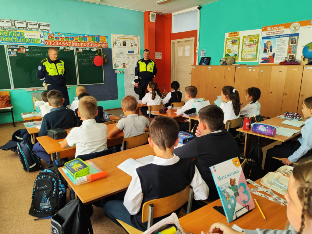 Детям напомнили о соблюдении Правил безопасного поведения на улицах и дорогах, а также в транспорте. Первоклассникам сотрудники провели экскурсию на пешеходный переход, ещё раз напомнили, как безопасно переходить через проезжую часть.