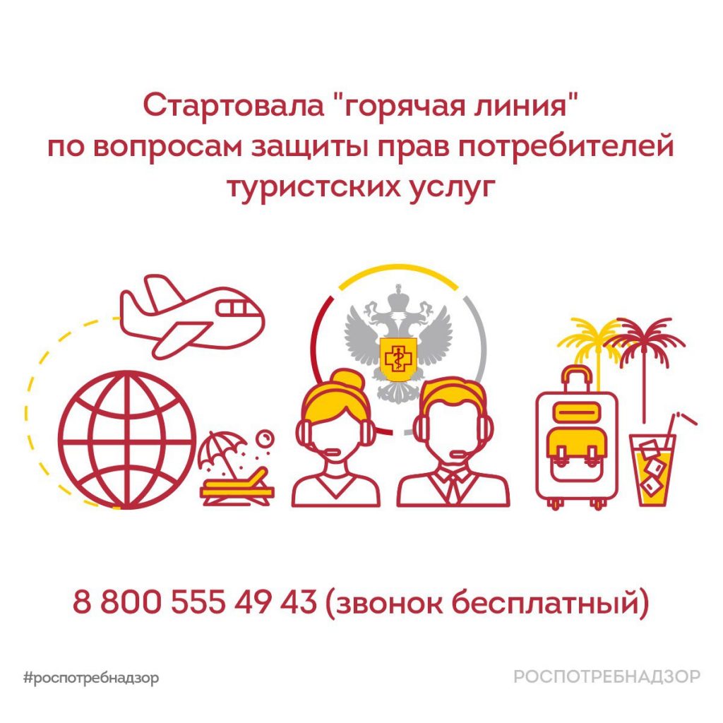 В период с 19 по 30 июня 2023 года Роспотребнадзор проводит всероссийскую «горячую линию», посвященную вопросам защиты прав потребителей при оказании туристских услуг и инфекционным угрозам за рубежом.
