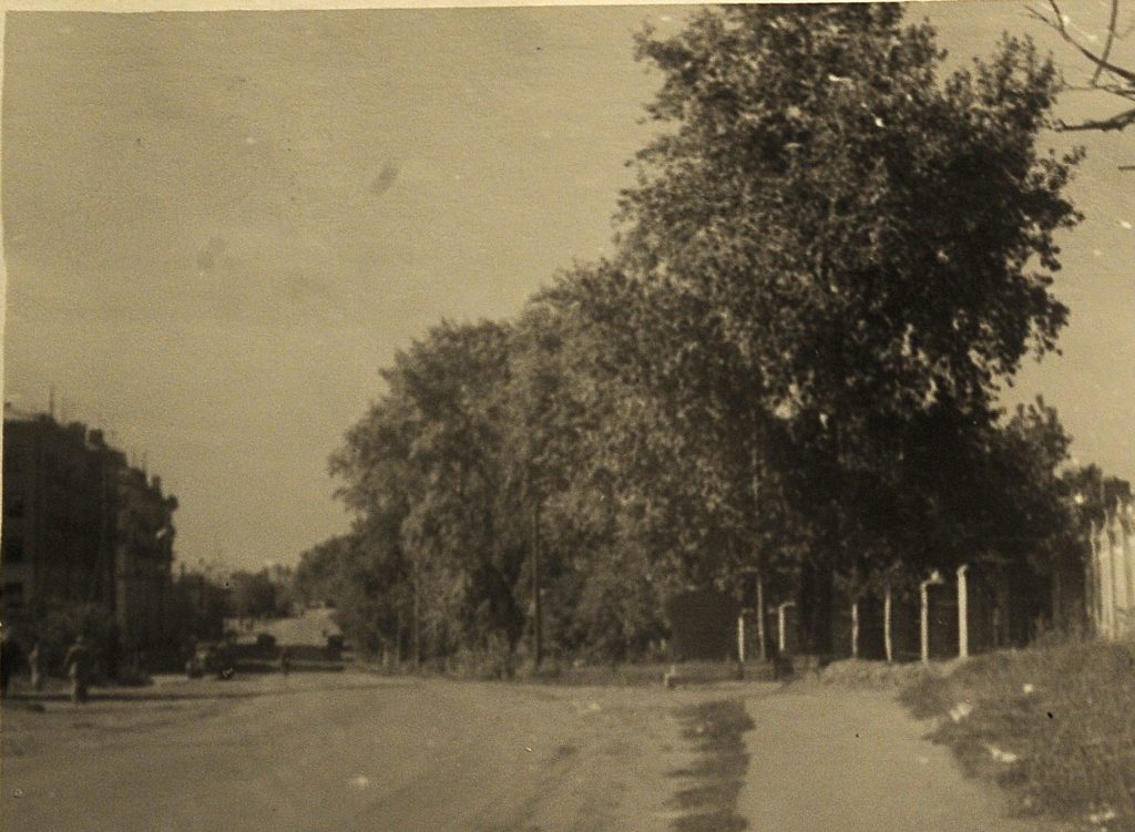 То, что это фотографии одной и той же улицы, можно понять только по виднеющимся слева домам №6 и 8 по ул. Карла Маркса. На фото 1961 года видно, что справа, где в настоящее время начинается спуск на площадь Победы, — густые деревья и кирпичная ограда парка, которая тянулась вдоль улицы и спускалась к берегу озера напротив дома №8. Позднее, при строительстве площади Победы она была снесена.