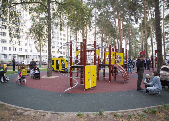 Здесь мы сделали зонирование, а также провели дополнительное светодиодное освещение. Из нововведений хочу отметить, что на футбольной площадке мы установили шумопоглощающее ограждение. Хотя в озеленении эта территория не нуждается, но по просьбам жителей здесь дополнительно высадили лиственные деревья.