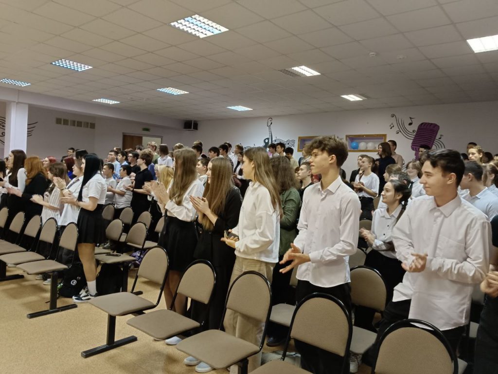 На встрече присутствовали участники специальной военной операции, фронтовые волонтеры и ученики старших классов. Школьники задавали бойцам вопросы о причинах участия в СВО, происхождении позывных, боевых задачах и товарищеской поддержке на передовой.