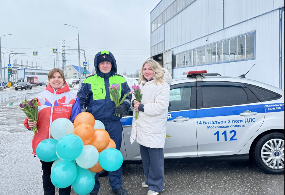 В преддверии Международного женского дня сотрудниками 14 батальона ДПС 2 полка ДПС Госавтоинспекции ГУ МВД России по Московской области и волонтерами «Раменского молодежного центра» на 41 км автодороги «Москва-Егорьевск-Тума-Касимов» муниципального округа Раменское Московской области проведена традиционная акция «Цветы для автоледи».